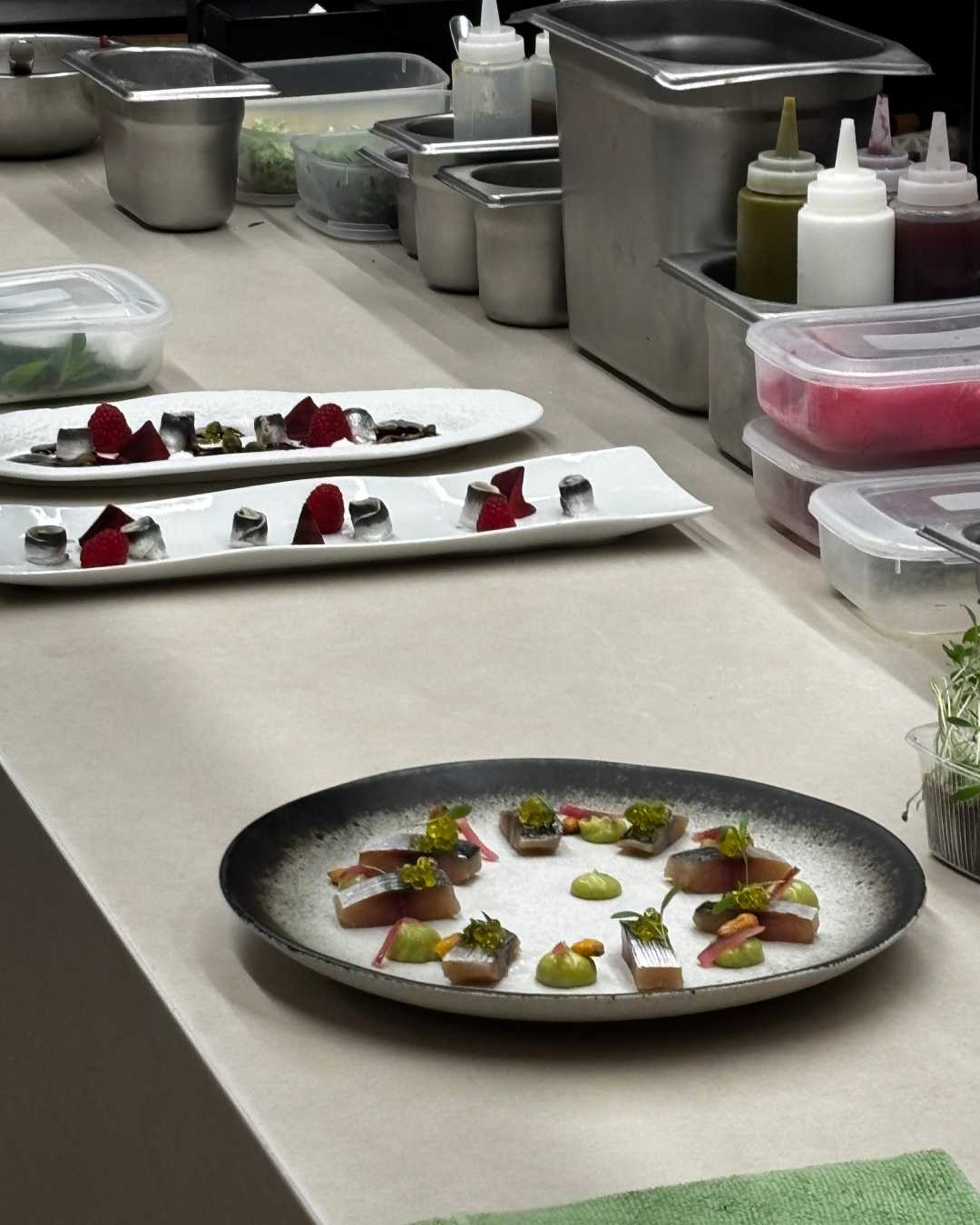 It is not the exact same dish, of course, but I learned that a conceptually similar version with the same building blocks was previously presented in Disfrutar’s seasonal tasting menu as “navajas cocinadas a la meunière” (Razor clams cooked in Meunière style). This is explicitly noted in the 2024 restaurant tasting reviews: Disfrutar 2024: En la cúspide de los elegidos. Disfrutar 2024: En la cúspide de los elegidos. – Complicidad Gastronómica
